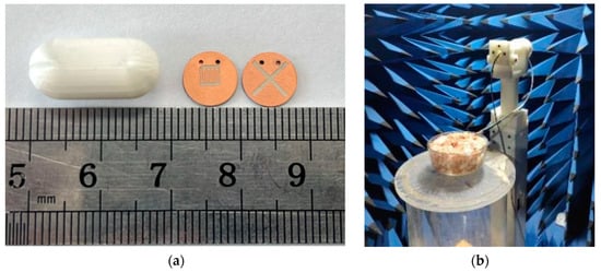 - Hayat, S.; Shah, S.; Yoo, H. Miniaturized Dual-Band Circularly Polarized Implantable Antenna for Capsule Endoscopic System. IEEE Trans. Antennas Propag. 2021, 69, 1885–1895. [Google Scholar] [CrossRef]