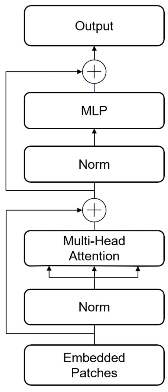 The Transformer encoder, shown in Figure 2, includes a multi-headed self-attention (MSA) layer and a multi-layer perceptron (MLP) block. The computation process for the multi-headed self-attention layer used in this paper is as follows.