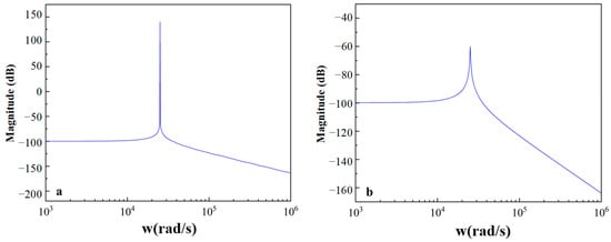 The bode plots of the micro mirrors established in MATLAB Simulink (a) the magnitude gains of the vacuum micro mirror; (b) the magnitude gains of the micro mirror in the air.