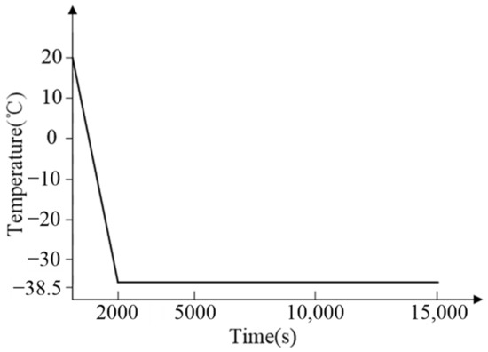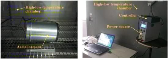 To validate the effectiveness of the thermal control design based on our heat leakage analysis, a thermal control experiment is conducted. The aerial camera is situated within a high–low temperature chamber, as illustrated in Figure 10. To simulate the environmental temperature variations experienced during flight conditions, the temperature inside the high–low temperature chamber is set as depicted in Figure 11.