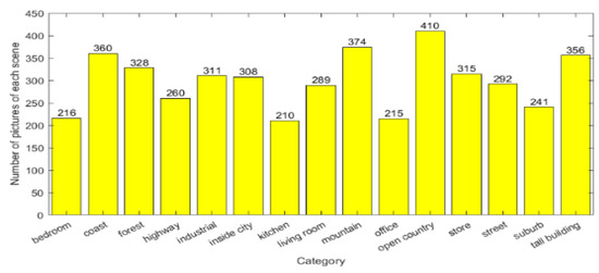 We take 15 scenes with excellent classification performance as an example. The number of each tag is recorded in Figure 8, and the classification results are recorded in the form of a confusion matrix in Figure 9. The comprehensive analysis reveals that: