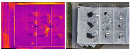 This study used a dataset containing coupled thermal and visible images of industrial assets to evaluate the proposed approach. The dataset is related to the roof of a building. This dataset includes 73 couple thermal and visible images. A DJI M300 drone equipped with a Zenmuse H20T camera (Da-Jiang Innovations Science and Technology Co., Ltd., Shenzhen, China) was employed for acquiring thermal and visible images at an altitude of 15 m. Figure 3 shows some samples of this study, and Table 1 outlines the specifications of both the infrared and visible cameras. All the experiments were implemented in the Python3.9 programming language on a computer with a 2080Ti GPU.