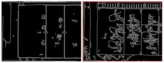 As shown in Figure 3, the infrared image has a smaller field of view. Therefore, it is considered the template. Notably, in Figure 4, the edges in both the infrared and visible images share similarities. It leads to extracting Canny edges from the template and the counterpart visible image. Figure 4 indicates the Canny edge map representation of the infrared image, which is used as a template, and the visible image sample.