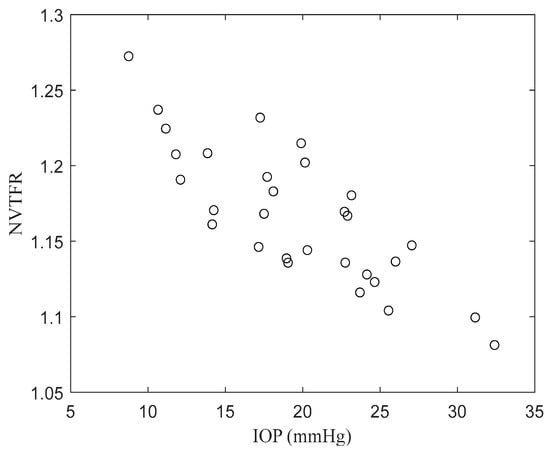 Additionally, by utilizing the Pearson correlation coefficient, the correlation between NVTFR and the measured IOP was found to be −0.8111. This indicates a strong negative correlation between the two variables.