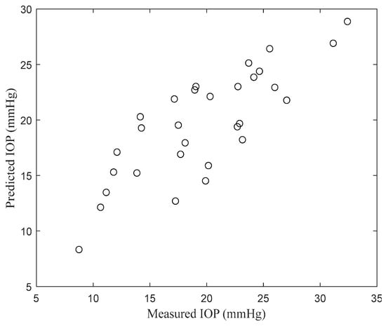 where is predicted IOP. The results of applying NVTFR to the derived GLM model and its prediction compared with the measured IOP are illustrated in Figure 5. This figure displays the outcomes, showcasing the relationship between the predicted values using the GLM model and the actual IOP measurements.