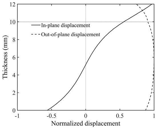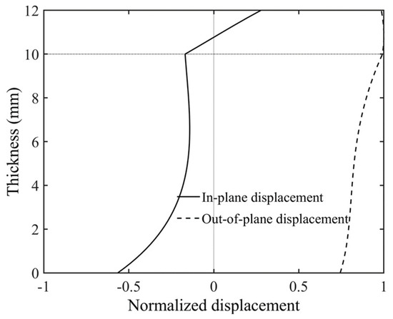 Displacement wave structure of the A0 mode at 80 kHz in aluminum–epoxy adhesive laminate.