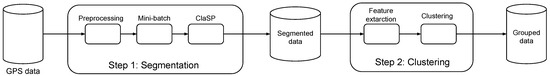 Unsupervised learning is an additional machine learning technique. It can find patterns or group data without utilizing any user-labeled information (visual observations or video). Many machine learning tasks, such as feature selection, data segmentation, change point detection, anomaly detection, and clustering, can be solved using unsupervised learning techniques. Some unsupervised learning methods can generate intermediate data to facilitate the downstream machine learning tasks (e.g., classification [19,21]). As far as we are aware, no existing works have used state-of-the-art techniques, including time series segmentation, for analyzing GPS tracking data.