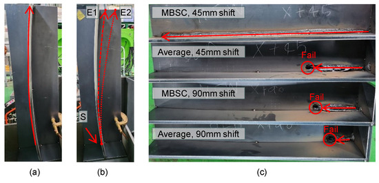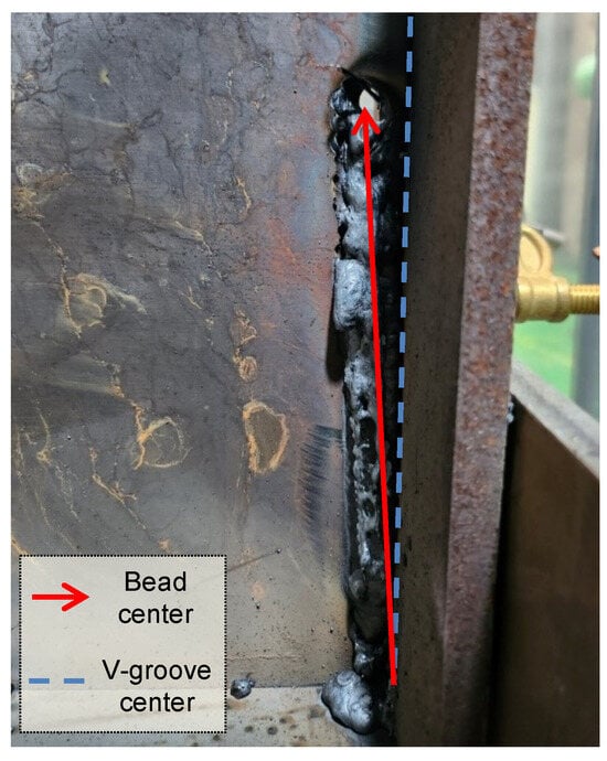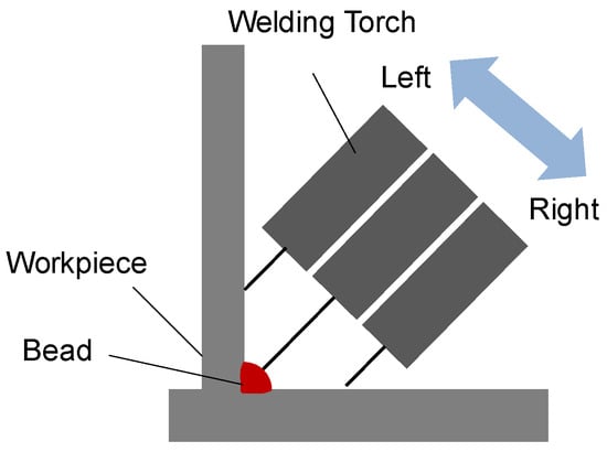 Figure 5 shows an instance where seam tracking has failed due to the previous reason. According to the formed bead shape, it can be seen that the torch fails to accurately recognize the V-groove center, which is the welding center line, and continues to be biased in one direction. This problem worsens as the welding progresses. As a result, the torch became biased and the welding ends as abnormal due to contact between the torch and the workpiece. The weaving-area-specific average feedback current values can show unpredictable values due to various environmental factors, such as the sampling cycle, sampling success rate, degree of curvature, gap size, and sensor accuracy. In other words, as in the example above, the existence of a gap in a curved workpiece or in workpieces with severe curvature means that the reliability of the area-specific average current values is reduced. Therefore, this study proposes a technique to correct the torch’s position more quickly and reliably through the detection of outliers in the feedback current values.