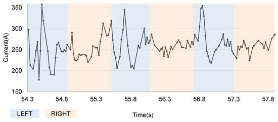 Next, it is necessary to match the reference scales of calculated in the two weaving areas. The range of current values in the left area, , is , and in the right area is . Since the range of current values in the right area is relatively small, it can be said that the current values in the right area tend to be more stable. Therefore, considering the scale of the left area, should be scaled up in the right area to detect outliers. Thus, the for the right area is finally determined as .