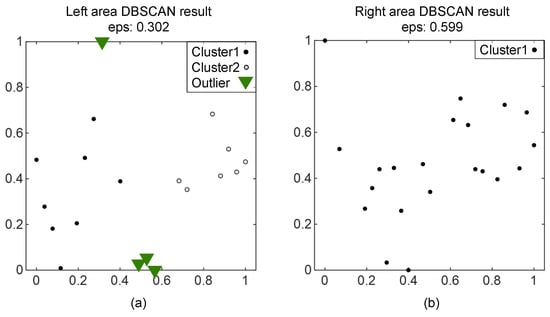 , there is a high likelihood that outliers will be included in other clusters, and if too small, many outliers may occur. Generally, for 2D data, it is recommended to set the