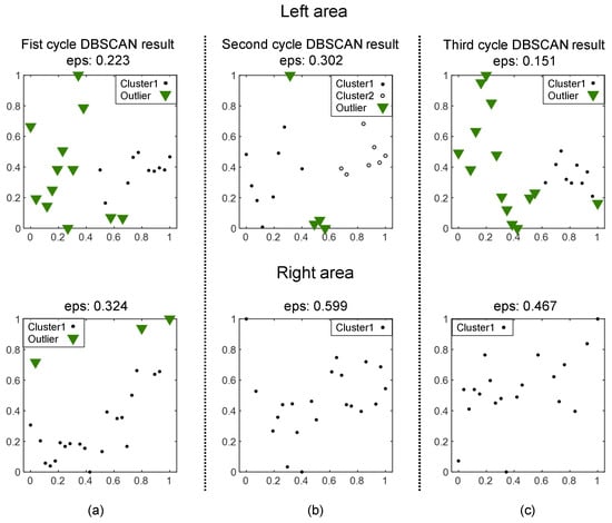Figure 8 shows the results of performing DBSCAN for each weaving area using the
