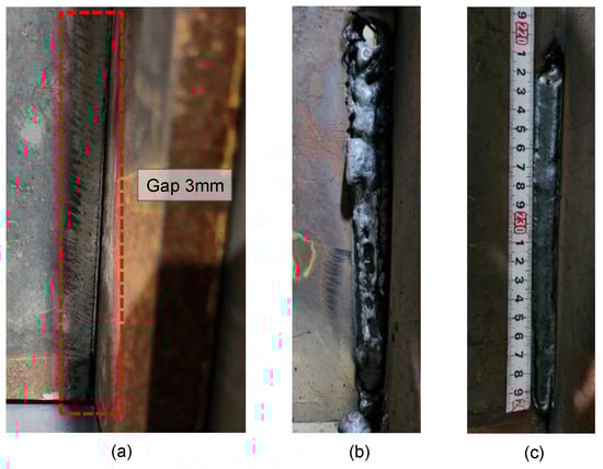 Figure 3b, very unstable average values are observed in the right area. Moreover, although the torch is closer to the left area and an increased feedback current value should be observed, the average value does not change significantly due to the control of short-circuit transition, which has already lowered the current levels. As a result, the average current value in the left area maintains a certain level, while the average current value in the right area shows very unstable values. According to these actual observations, it can be seen that, in conditions where there is a gap in a curved workpiece, if the offset is not corrected promptly even under the normal state, it can lead to an irrecoverable failure instance like this.