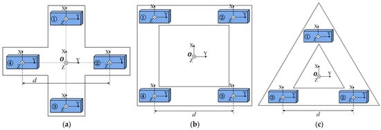 Usually, for convenience, set dx = dy = dz = d. However, the redundant sensors make the structure complex, and the three-dimensional design is inconvenient for installation in practical applications and can potentially introduce system errors [20].