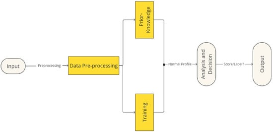 A general anomaly detection framework [18] is depicted in Figure 1 and was developed from a generic intrusion detection framework. A dataset of data instances with data characteristics is the input used in an anomaly detection system. The data may need to be pre-processed before continuing, depending on the detection strategy. After that, data processing is used to create a normal profile by applying either a training technique or past knowledge. An established threshold can be used to identify a test instance as anomalous once a normal profile has been created.