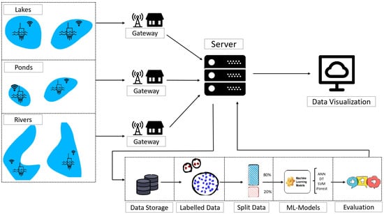 Anomalies within water quality data from river sensors can be automatically identified using advanced detection methods. The authors in [5] demonstrate that distinct anomalies, such as abrupt spikes and level alterations, can be reliably detected using regression-based techniques. However, these techniques become less effective when multiple water quality parameters are analyzed concurrently. Their framework focuses on automated anomaly detection within high-frequency datasets, particularly for turbidity, conductivity, and river level metrics from rivers feeding into the Great Barrier Reef. Similarly, the study by [6] addresses the critical need to mitigate the spread of harmful substances within river systems. The authors propose a methodology that combines a Bayesian autoregressive model with the Isolation Forest algorithm, effectively predicting variations in water quality and detecting anomalies. In another notable study, ref. [7] evaluates different outlier detection methods for water sensor data from Dutch water authorities. Among these methods, the QR-MLP model is identified as the most effective, detecting both simulated and real anomalies without requiring specific rules for each type of outlier. ML techniques have proven to be powerful tools in the detection of anomalies in water quality data. The study in [8] investigates ML techniques for detecting anomalies in water quality data from a treatment plant in Kenya. It highlights the Local Outlier Factor algorithm as particularly effective for identifying outliers in turbidity and pH parameters and compares four time-series anomaly detection methods. Further expanding on anomaly detection in water treatment, ref. [4] compares Deep Neural Networks (DNNs) and Support Vector Machines (SVMs) within a Cyber-Physical System (CPS). The study finds that while DNNs produce fewer false positives, SVMs detect slightly more anomalies, indicating that each method has distinct advantages depending on the application context. The application of the One-Class Support Vector Machine (OC-SVM) technique in water supply data is explored in [9], where high abnormality scores are attributed to entries with extreme values and unusual sequences. This study, based on data from the Ministry of Water Resources of China, highlights the effectiveness of OC-SVM in identifying significant anomalies. Real-time monitoring for drinking water quality is crucial, as illustrated in [10], which proposes the ADWICE data mining algorithm. Integrated into SCADA systems, this algorithm enhances anomaly detection accuracy by analyzing sensor data from multiple locations, addressing issues such as missing and inaccurate data. Building on the importance of early and accurate anomaly detection, in [11], the OddWater method utilizes statistical transformations and unsupervised outlier scoring to identify outliers caused by technical errors in sensor data, maintaining low false detection rates. This method is particularly effective for early detection in water quality monitoring systems. An innovative approach in environmental monitoring is presented in [12], where machine learning techniques and correlated sensor data improve outlier detection. By modeling individual sensor behavior and leveraging data correlations, this method significantly enhances data quality and reliability. For smart city applications, ref. [13] emphasizes the use of low-cost, low-power IoT sensors for water monitoring. The proposed anomaly detection system employs one-class classifiers to differentiate between harmless and hazardous substances in wastewater, demonstrating the potential for cost-effective and efficient monitoring solutions. The integration of IoT technologies in water management is further explored in [14], which uses ARIMA and HOT-SAX techniques to detect anomalies in consumption patterns from smart meters. This approach aims to prevent water waste and optimize resource use. In [15], a novel algorithm for real-time anomaly detection leverages historical patterns and prediction intervals to reduce false alarms and improve performance. The study emphasizes balancing time and space complexity to enhance the algorithm’s efficiency. Additionally, ref. [1] introduces MCN-LSTM, a deep learning-based technology for real-time water quality monitoring, achieving high accuracy in anomaly detection. This advancement supports decision-making and environmental protection in automated monitoring systems. Finally, in [16], the authors present a prototype water quality monitoring system based on IoT technologies, incorporating a LoRa repeater and an anomaly detection algorithm. By extending LoRa communication coverage and improving long-range wireless communication distance, the system enhances monitoring reliability while addressing communication and detection challenges. In conclusion, these studies collectively underscore the importance of developing sophisticated, reliable, and efficient methods for anomaly detection in water quality monitoring. The integration of machine learning, IoT technologies, and advanced algorithms offers promising solutions to address the challenges of environmental monitoring and protection.