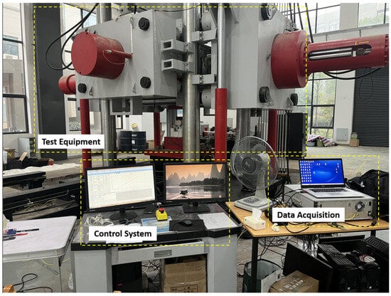 This study employs the YJW-20000S micro-computer-controlled electro-hydraulic servo large-scale rock three-way five-sided loading test system (Jointly developed by Central South University and Shanghai Hualong Testing Instrument Co., Ltd., Shanghai, China). The test system offers three-way loading modes categorized into load control and displacement control. The load-indicating value error is within ±1%, and displacement measurement accuracy exceeds ± 1%, with a resolution of 0.001 mm.