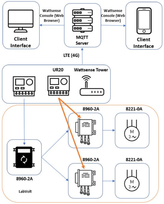 The EM block allows the data acquisition of the electrical characteristics of any system connected through the external interface depicted in Figure 3. This block is essential for troubleshooting and commissioning since it allows the operator to analyze the electrical system. The hardware was adapted to have external overcurrent protection at every connection point and calibrated with a current transformer calibrated to a ratio of 100:1 ampere. The implementation of this block is executed by a meter directly connected to the desired section of the system that is to be analyzed.