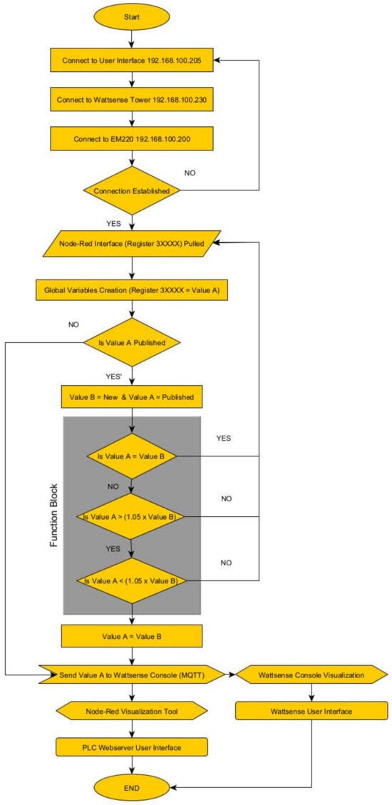 This ensures the instantaneous backup of the data received in the PLC, allowing the user to undertake further analysis of the data received if an error or failure occurs in the system within a period of 1 s. This technique was utilized by Novianty et al. [6] once the authors identified the latency of their system and the potential data loss caused by a lost connection between the gateway and the user interface.