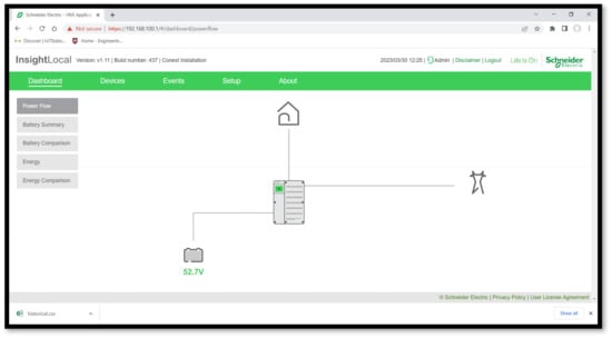 The direct interface from the Schneider gateway, which also illustrates the direct connection to the load, grid, and battery bank.