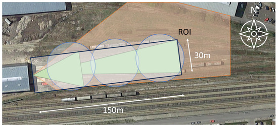 The data were collected in the vicinity of a railway depot in Austria. The region of interest consists of three parallel tracks (30 m) over a length of about 150 m (including old parked wagons—for graffiti).
