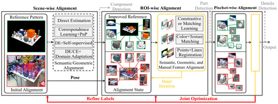 - Complete observation. This means that the current observation can be well-represented by the configured sub-pattern (or combination), while the subsequent addition of data has little impact. For example, the presence or absence of fasteners can be determined using typical templates or area-based conditions. Due to good visibility and fewer unpredictable changes, some objects can be modeled by CNN and existing datasets to improve their sub-pattern (semantic);