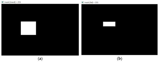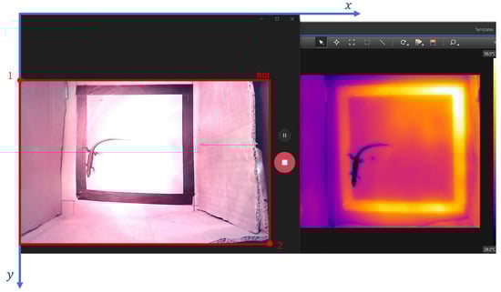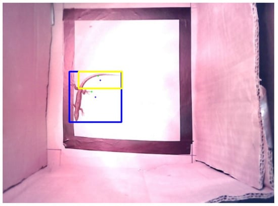 To detect the lizard and its six body parts, the model analysed in Section 3.1 was used. Since it was desirable to apply detection only to the RGB image, a region of interest (ROI) involving only the RGB image was created. The region of interest was defined using Equation (6).