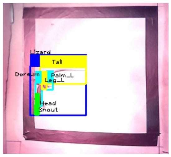 Figure 6 shows the detection of the lizard and its six body parts in the defined region of interest.
