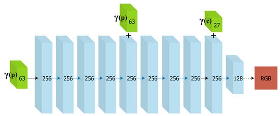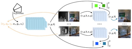 - Mildenhall, B.; Srinivasan, P.P.; Tancik, M.; Barron, J.T.; Ramamoorthi, R.; Ng, R. Nerf: Representing scenes as neural radiance fields for view synthesis. Commun. ACM 2021, 65, 99–106. [Google Scholar] [CrossRef]