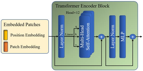 Subsequently, is fed to the global Transformer encoder, which is composed of multiple layers of multi-head self-attention (MSA) and multi-layer perceptron (MLP) modules. The global encoding procedure enables a global perspective in order to identify regions that exhibit copy–move tampering traits throughout the image at the patch level. The MSA block and MLP layers are added before a LayerNorm layer and residual connection. Figure 4 shows the specific steps of the global Transformer encoder.
