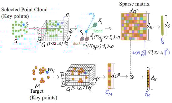 The number of key points in the transformation that fall into each grid forms the vector . The feature of the selected point cloud can be calculated as follows: