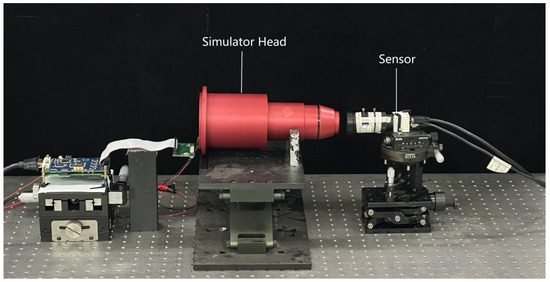 To verify the feasibility of the compensation method, and as shown in Figure 4, a test environment was constructed by placing the LCD with a backlight source inside the head of the dark-and-weak-target simulator. Control of the LCD panel displaying the image was completed by driving the display circuit. Specifically, an Epson L3P14U-51G00R LCD display panel was used. For the sensor, an FLIR Black S BFS-PGE-50S5M-C camera was used, with an exposure time of and an exposure gain of 2 .