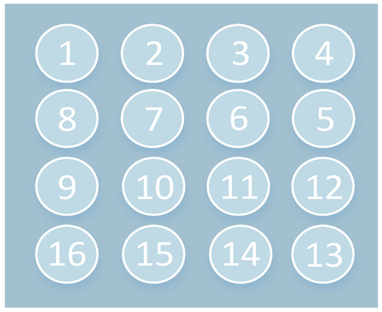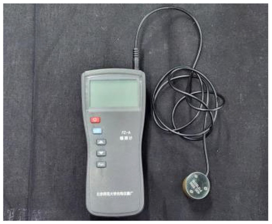 With the backlight light source activated, we placed the irradiance meter on the irradiance surface of the light source. We adjusted the current of the backlight power supply so that it reached a maximum value when the light-sensitive surface was facing the backlight light source. When the light source was stabilized, the irradiance meter was used to take rapid measurements at 16 different positions on the surface of the light source, to eliminate any errors arising from instability in the light intensity. As a side-entry backlight panel was used, and default LED beads were placed above the backlight panel, the horizontal irradiation did not change much, while vertical irradiance decreased incrementally due to light attenuation on the propagation path. Figure 5 shows a schematic diagram of the method used for testing irradiance inhomogeneity. Figure 6 shows the irradiance meter used.