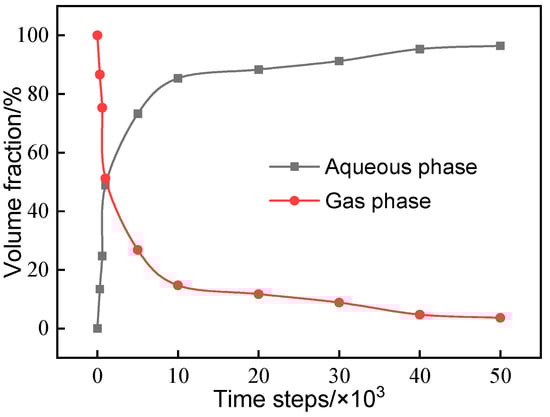 Change of the two-phase volume fractions at different time steps (unit: step).