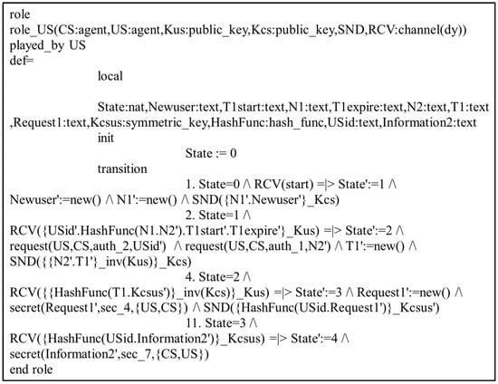 Role specification of the User (US) in HLPSL.