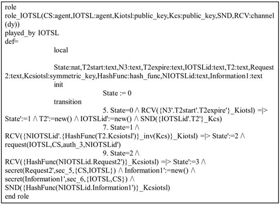 Role specification of the IoT Sensor Layer (IOTSL) in HLPSL.