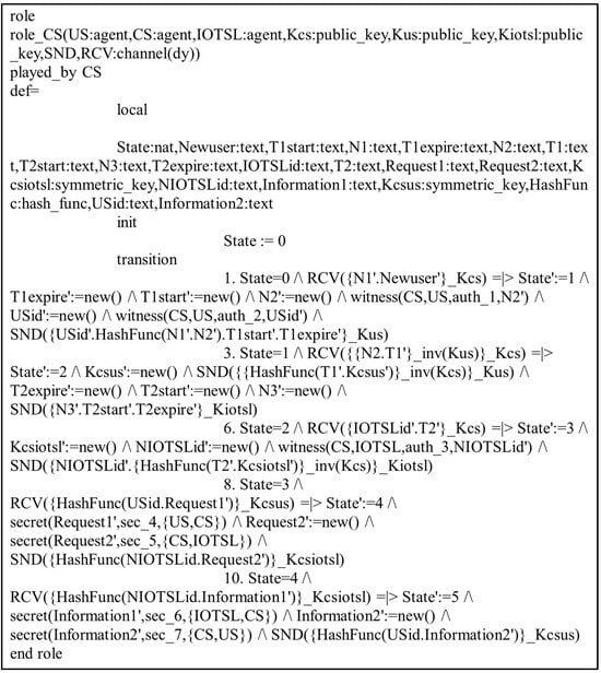 Role specification of the Central Server (CS) in HLPSL.