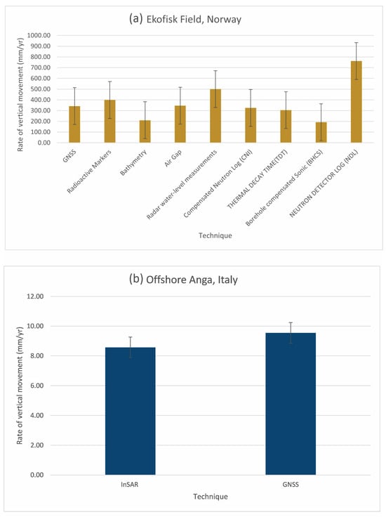 Despite the considerable progress made in the monitoring of gas leakages through remote sensing techniques [11,20,21], obtaining accurate and reliable measurements of subsidence and other vertical movements of the seafloor remains a challenging issue. Therefore, a comprehensive review of subsidence monitoring techniques is necessary to ensure the safe and sustainable extraction of oil and gas from offshore fields and to mitigate the negative impact on the environment and marine life. Here, we tackle this issue, focusing on particular reference to offshore extraction or injection activities.