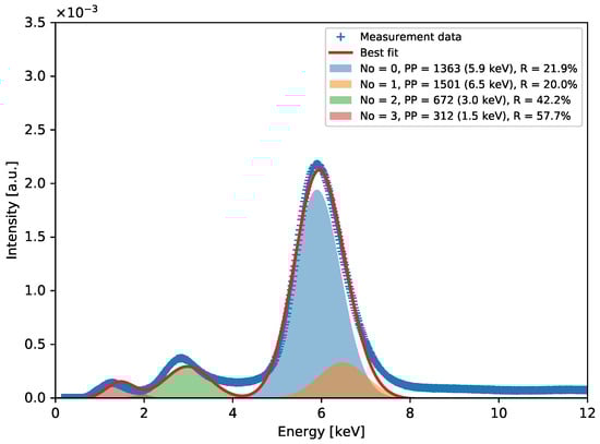 There are significant advantages in using foils with no heavy elements, which results in no background fluorescence radiation (from copper and chromium excitation). These advantages have been extensively discussed in the context of soft X-ray photon detection (e.g., in []). The actual measurements were performed in the same manner as in our previous studies [,]. Therefore, the results presented below can be directly compared to former measurement outcomes.