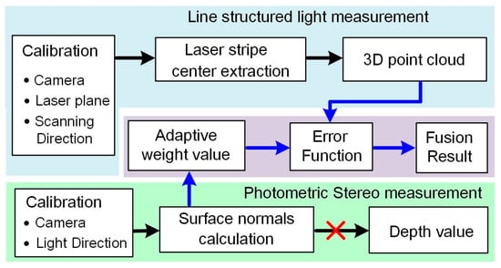 Shi J, Li Y, Zhang Z, Li T, Zhou J. Adaptive Weighted Data Fusion for Line Structured Light and Photometric Stereo Measurement System. Sensors. 2024; 24(13):4187. https://doi.org/10.3390/s24134187