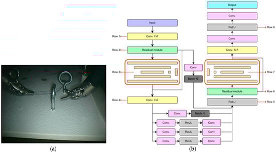 The ITAP dataset [] includes 3532 frames extracted from simulated surgical scene videos (Figure 2a). The simulated surgical procedures involved the manipulation of various porcine organs ex vivo, employing the surgical tool Clickline (Karl Storz, Tuttlingen, Germany). Among the recorded 3532 frames, only 609 frames contain the surgical tool based on frame labels. The videos were captured using a Storz Telecam One-Chip Camera Head in conjunction with the HOPKINS telescope 0° (Karl Storz, Germany). Each frame exhibits a resolution of 720 × 576 pixels, and labels are represented as bounding boxes.