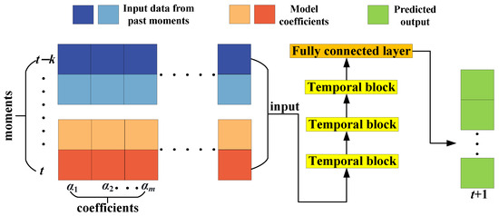 A Temporal Convolutional Network (TCN) is a deep learning model used for sequence modeling, and its basic structure is illustrated in Figure 2. TCN’s convolutional layers not only handle input and feature extraction but also employ techniques such as causal convolution and dilated convolution. Causal convolution ensures that the model does not utilize future information during prediction and only relies on past and current inputs. Dilated convolution, on the other hand, increases the receptive field of the convolutional kernel, allowing it to capture longer-term dependencies [27].