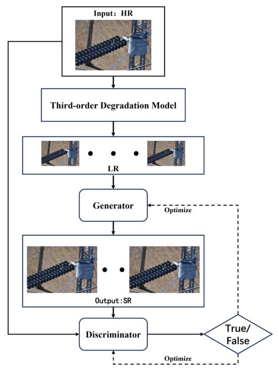 Most of the aforementioned methods for detecting the abnormal states of equipment using images for electrical equipment fault detection algorithms are based on the assumption that electrical equipment images exhibit high-quality accuracy for fault detection [19]. However, in practice, electrical equipment images are frequently influenced by various external factors, such as weather conditions, changes in lighting, and shooting angles [20], which may lead to local noise or overall blurring of the image. This degradation in the image quality directly affects the accuracy and efficiency of fault recognition. Therefore, image resolution reconstruction needs to be considered to enhance the accuracy and robustness of fault recognition.
