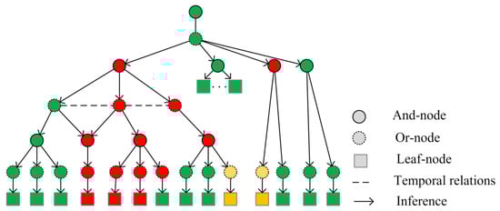 We utilized the multilayer Causal And-Or Graph Model (C-AOG) to represent the equipment state transition model under the collaborative operation of multiple equipment events, thus facilitating the inference of the specific operating status of the power system. The specific logical structure extraction is based on general FOL to abstract the C-AOG graph, and we set the middle layer as and/or logical structure to realize the logical hierarchical construction of the graph. This is shown in Figure 5.