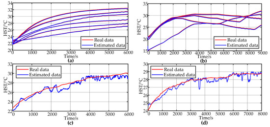The second part involves long-term temperature rise experiments under variable load conditions, simulating applications such as rail transportation. The capacitors undergo temperature rise testing over a long time scale at various power levels set for multiple mission profiles. The DC current and HST data for one group of the data groups are shown in Figure 6d. It can be observed from the figure that there are significant changes in the HST with variations in the DC current at different time intervals. This indicates a strong coupling relationship between the capacitor HST and the DC current.