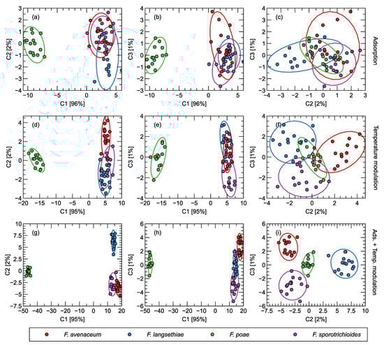 - Borowik, P.; Dyshko, V.; Tarakowski, R.; Tkaczyk, M.; Okorski, A.; Oszako, T. Analysis of the Response Signals of an Electronic Nose Sensor for Differentiation between Fusarium Species. Sensors 2023, 23, 7907. [Google Scholar] [CrossRef]