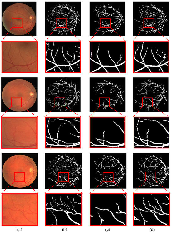 In recent years, the prevalence of diseases such as diabetic retinopathy and hypertension has been on the rise due to irregular lifestyles and unhealthy eating habits. According to the International Diabetes Federation’s latest estimates for 2021, approximately 537 million people worldwide are living with diabetes [1]. In most cases, retinal diseases are asymptomatic until they reach an advanced stage. Therefore, timely detection and treatment are essential to prevent irreversible blindness. Therefore, accurate segmentation of retinal blood vessels is a key task in diagnosing these diseases.