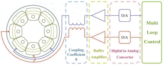 Due to variations in the specific control scheme, the electrodes used in the driving chain may also change. However, the voltage-to-driving-force gain for each electrode can be directly calculated by substituting the electrode center angle into Equation (9). Assuming that the voltage-to-driving-force gain in Channel and Channel are and , respectively, then the driving forces generated by the driving electrodes in Channel and Channel , and , can be further represented as: