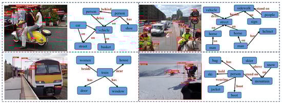 - Gu, J.; Zhao, H.; Lin, Z.; Li, S.; Cai, J.; Ling, M. Scene graph generation with external knowledge and image reconstruction. In Proceedings of the IEEE/CVF Conference on Computer Vision and Pattern Recognition, Long Beach, CA, USA, 15–20 June 2019; pp. 1969–1978. [Google Scholar]