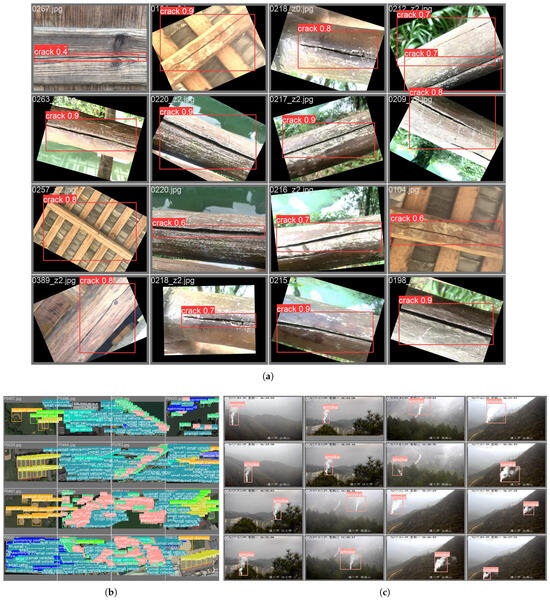 Despite achieving commendable detection accuracy, the proposed algorithm still encounters instances of missed detections and false alarms. The network’s resilience may diminish in response to alterations in lighting conditions. Our future research will prioritize the comprehensive collection of crack images in wooden materials and will further investigate the relationships among factors such as types of wooden materials, quality of data annotation, types of cracks, crack orientations, and their future development trends. Additionally, in-depth studies will be conducted on the impact of various types of cracks in wooden materials on the structural health of buildings. Additionally, the main objective of model research is to accelerate detection speed and robustness while keeping model complexity from significantly increasing, improving real-time detection performance, and integrating multiple data sources to enhance detection accuracy and reliability.