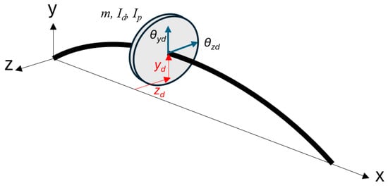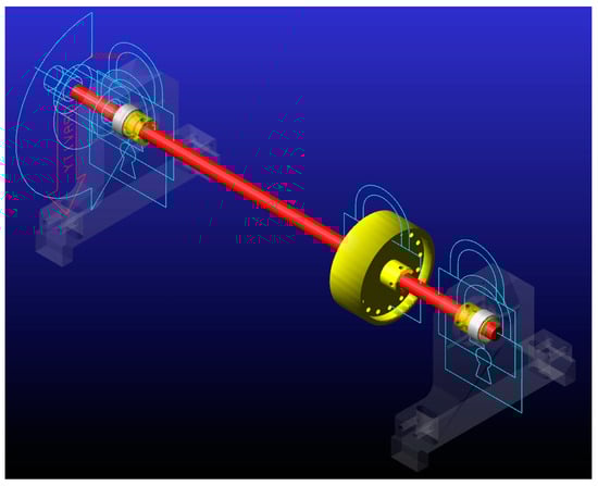 - Rigid Disk: A mass imbalance is introduced by a single rigid disk mounted on the flexible shaft at a distance equal to 1/4 of the bearing distance. The disk’s mass is 1.41 kg, and its moments of inertia around the x, y, and z axes are Ixx = 1980.0672 (kg·mm2), Iyy = 1123.5965 (kg·mm2) and Izz = 1123.579 (kg·mm2);